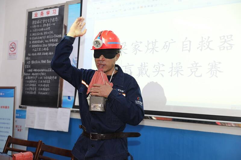 为检验自救器“盲戴”效果,确保实现“盲戴”合格率100%的目标要求,该矿安全监察科联合机电工区、通风工区等部门,利用班前会时间,走进基层区队,以随机抽取的方式开展“自救器盲戴实操”擂台赛。