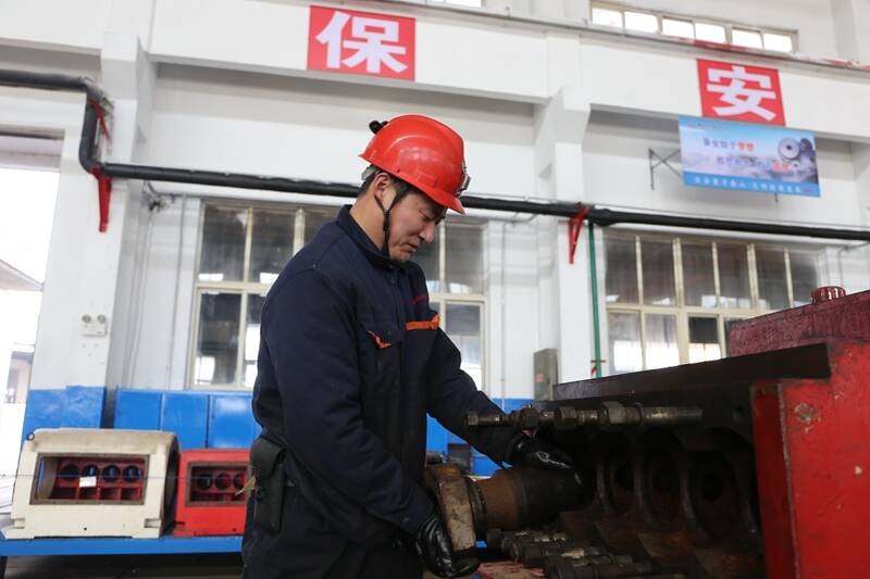 (维修工李洪兴拆解乳化泵缸套)