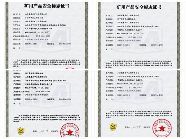 近日,盟鲁公司研发的渗锌全螺纹锚杆、渗锌细牙锚杆、等强螺纹钢式树脂锚杆金属杆体等7项产品,再次获得国家矿用产品安全标志证书。这是继去年8月以来,该公司取得的第三轮矿用产品安全标志证书,填补了渗锌材料矿用产品安全标志的空白。