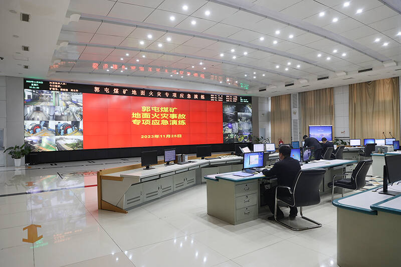 在郭屯煤矿,一场程序规范、反应迅速、配合密切的地面火灾事故专项应急演练正有序进行。