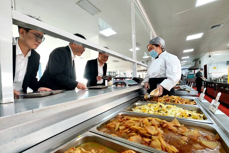 针对深秋“燥邪当令、脾胃易虚”的特点,后勤服务办公室联合食堂团队调整餐饮方案,推出“深秋养生系列菜品”。在全天免费供应小米粥的基础上,早餐增加八宝粥温热粥品及馄饨、水饺等花样美食;午餐推出萝卜炖牛腩、清炒山药等温补菜品,同时保留凉皮、凉拌藕片等清爽素菜,做到“温而不燥、补而不腻”;晚餐则以清淡易消化为主,提供冬瓜丸子、蔬菜豆腐等,兼顾职工不同口味需求。食堂还在取餐区设置了“健康小贴士”展板,标注每道菜品的营养功效,引导职工科学饮食。