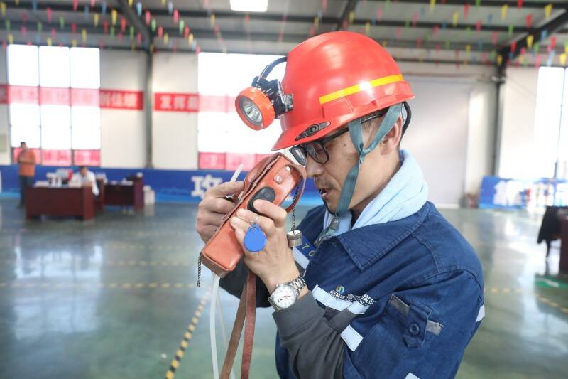赛场上,选手们的表现更是令人瞩目。来自王楼煤矿的参赛选手王冲冲,严格遵守竞赛规程,身着整齐的工作服、头戴安全帽,精神抖擞地投入各个竞赛环节。据了解,为在此次竞赛中取得佳绩,王冲冲赛前主动放弃休息时间,扎根训练场地,从光学瓦斯检定器的检查选定到气体浓度的精准测量,从故障排查的快速响应到应急处置的规范流程,反复琢磨每一个细节,不断提升操作熟练度与精准度。“技能竞赛不仅是展示自我的舞台,更是检验我们日常工作成果的试金石。”王冲冲在赛前交流中说道。