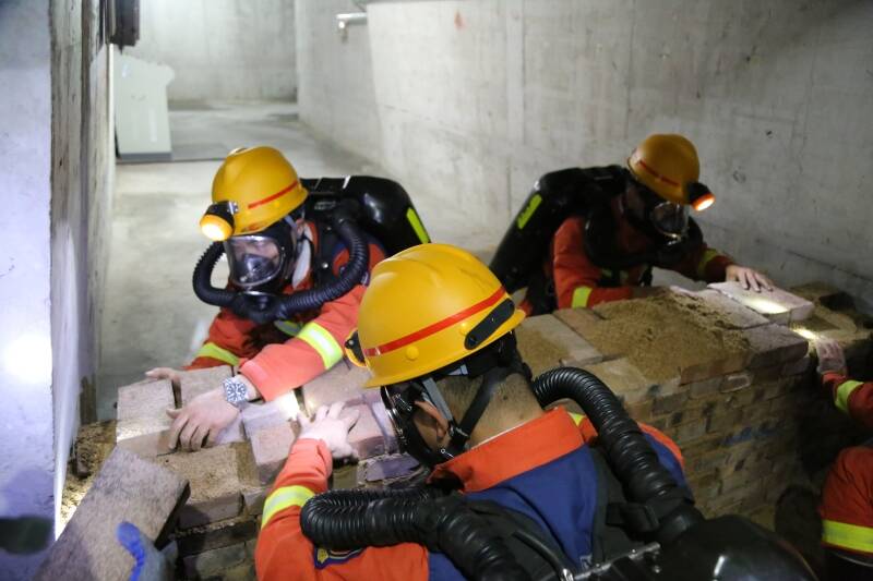 任务完成后,队员们仔细恢复巷道原貌,将每一块砖、每一根支护材料归位。现场没有预演的痕迹,只有实战留下的硝烟,没有刻意的表演,只有全情投入的身影。