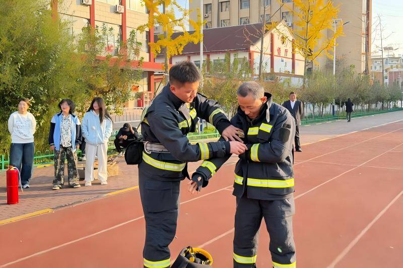 为打破传统安全教育枯燥乏味的局限,该院精心设计消防宣传互动环节,让师生在趣味体验中增强学习效果。在消防装备体验区,师生们在消防员指导下穿戴防护服、操作专业装备,直观感受消防救援人员的工作强度与装备性能。“穿上这身厚重的防护服,才真切体会到消防员逆行而上的艰辛,也更清楚规范使用消防装备的重要性。”一名参与体验的实训教师感慨道。该院还在校园广场设置消防应急车辆及装备展示区,消防员现场演示高压水枪、破拆工具等设备的使用方法,组织师生分组体验,在实践操作中掌握基础消防技能。