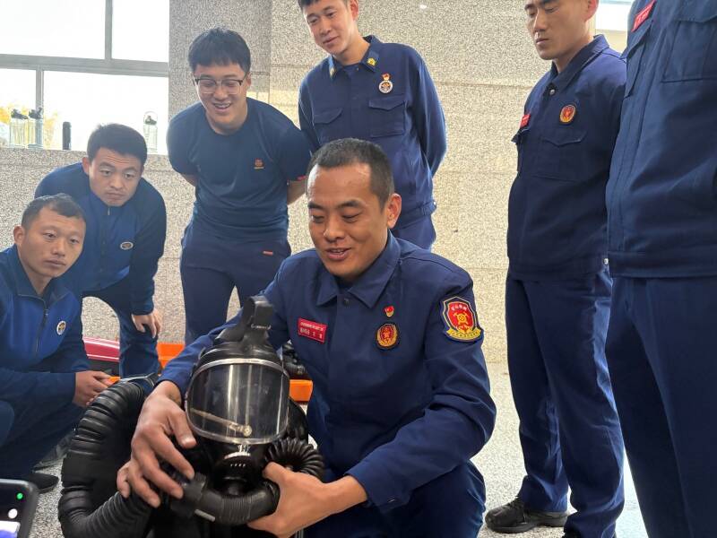 活动中,该中队救援人员携带专业救援装备,以“讲解+实操”相结合的方式,向新汶消防队队员详细介绍了BG4氧气呼吸器的工作原理、规范操作流程及安全注意事项。理论讲解后,队员们“一对一”指导消防员进行佩戴体验,从装备调试到操作细节逐一示范,确保每位消防员都能熟练掌握基本操作,真正做到“听得懂、学得会、用得上”。