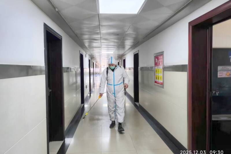 面对甲流较强的传染性,该公司组建专业队伍开展“无死角、全覆盖”消杀行动。他们按照“每日一消杀、重点多频次”原则,对各生产工区、办公场所、“两堂一舍”等区域进行全面消毒,重点聚焦更衣室、公共卫生间、门把手、楼梯扶手、操作台面等人员密集、高频接触部位,采用合格浓度的84消毒液进行喷洒与擦拭。