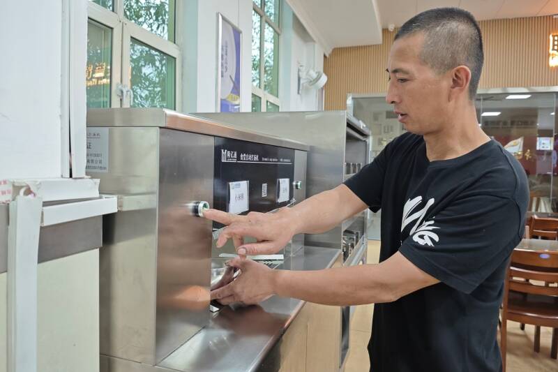以往受人员、空间等因素影响,该公司将稀饭放在售卖窗口,每班安排2名工作人员为职工“盛汤”,不仅影响效率还浪费人工。为此,他们在餐厅空间优化的基础上,安装2台自动“盛汤机”,实现职工一键自助取汤。同时,进一步丰富汤品种类,在玉米粥、小米粥的基础上,增加了鸡蛋汤、大米汤等汤品,进一步满足了职工多样化的需求。