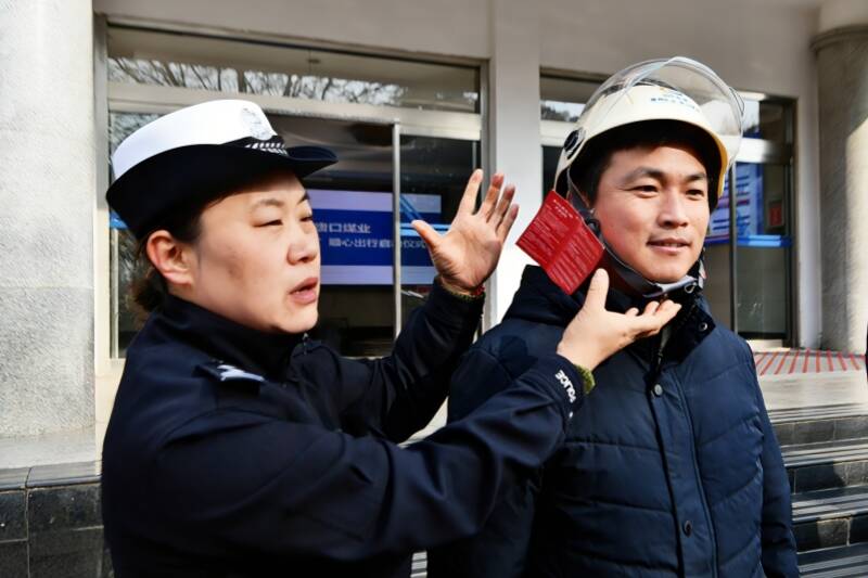 “一盔一带,安全常在。安全头盔是电动自行车骑行者的生命护罩,正确佩戴才能真正发挥防护作用……”近日,济宁市任城区交警大队工作人员在唐口煤业工区楼前,为该公司干部职工讲解安全头盔的正确佩戴方法及注意事项。