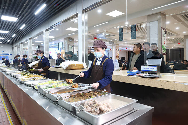 矿井高标准完成“三堂一舍”和停车场改造,投用洗煤厂澡堂,让一线职工下井作业后能舒舒服服洗个热水澡。食堂还根据职工口味调整菜谱,增加特色面食窗口,每天提供十余种菜品选择,满足不同职工的饮食需求。