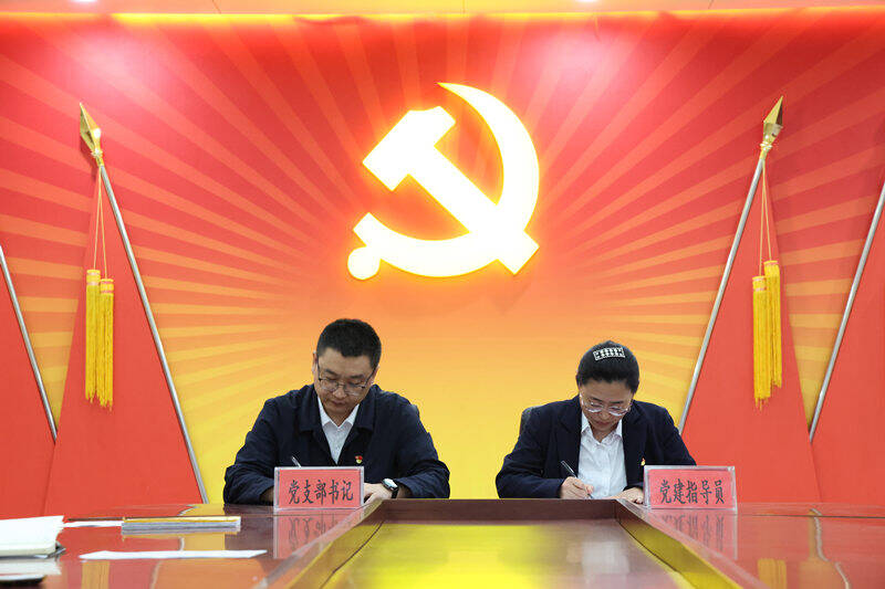 各党支部书记与党务业务骨干围绕支部工作实际与个人专业特长,面对面沟通、点对点对接,在充分酝酿的基础上结成“指导对子”,并现场签订《“德·创”党建指导员(第一书记)协议书》,变“单向选派”为“双向奔赴”,让青年骨干在基层一线找到了实践锻炼的舞台。